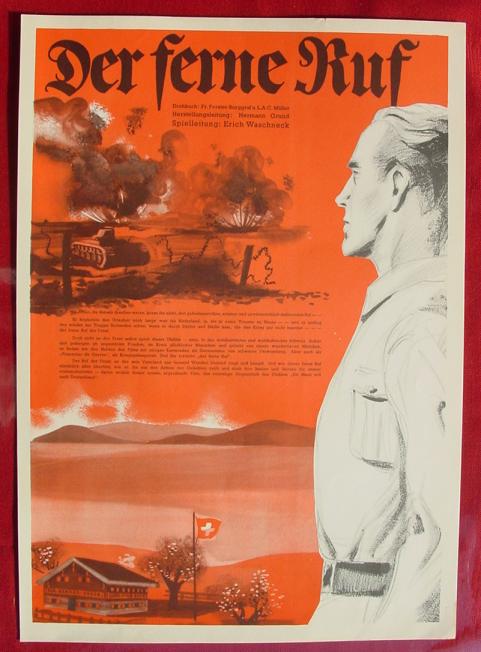 Ufa-Plakat Original ! Filmplakat zum Spielfilm 'Der ferne Ruf'. Drehbuch : Fr. Forster-Burggraf u. L.A.G. Müller, Herstellungsleitung : Hermann Grund. Spielleitung : Erich Waschneck. Plakatformat ca. 31 x 44 cm. Rückseite unbedruckt. Plakat war mit anderen Plakaten lose beigelegt in Ufa-Programm-Mappe, Scherl-Verlag, Berlin. Ufa-Film 1939-1940. Zustand : Wirklich gut, wurde direkt aus Originalmappe entnommen und in eine Plakate-Sammlung gebracht. Plakat ist NICHT gefaltet und hat KEINE Nadellöcher. (Intern : 2001699) = Euro 45,00 |